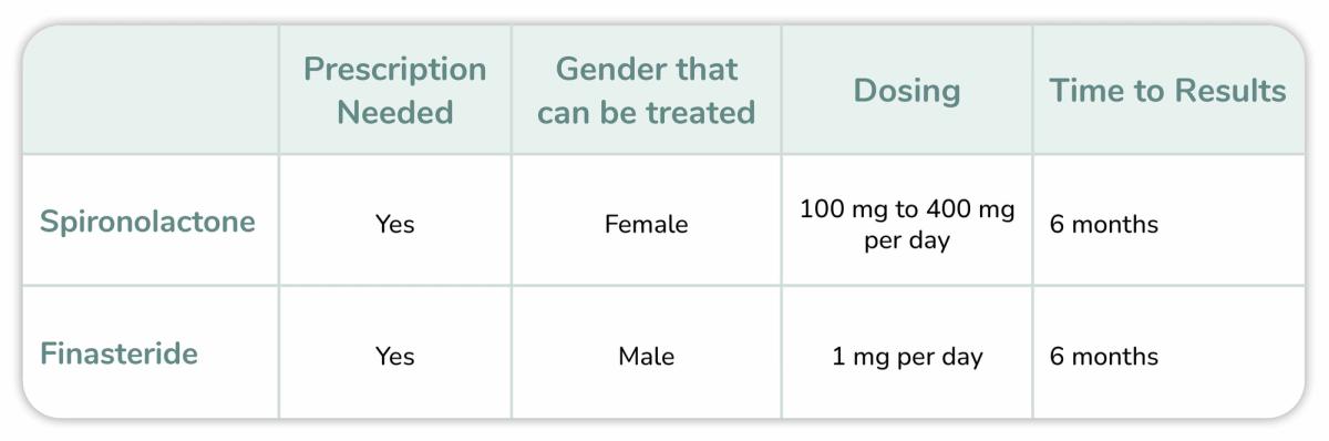 Spironolactone and finasteride are oral medications commonly prescribed for hair loss or androgenetic alopecia. Both medications interact with androgen hormones in the body to prevent or stop hair loss, but they affect hormones differently. This is why it is recommended that only women take spironolactone and only males take finasteride.